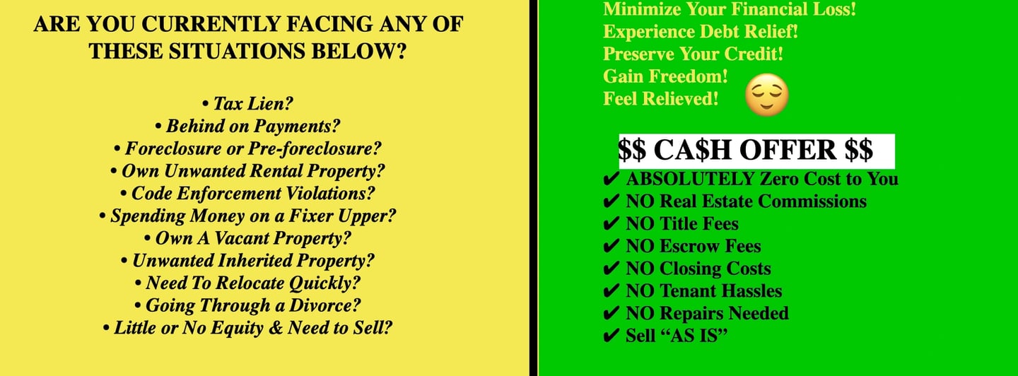 Whether you’re behind on payments, going through probate, dealing with unwanted tenants, or simply need to sell fast, we’re here to help. You’ll receive a fair, no-pressure cash offer within 24 - 48 hours and can close on your timeline.